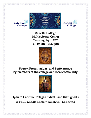 The free event is April 21, 11:30 - 12:20 pm is Poetry reading